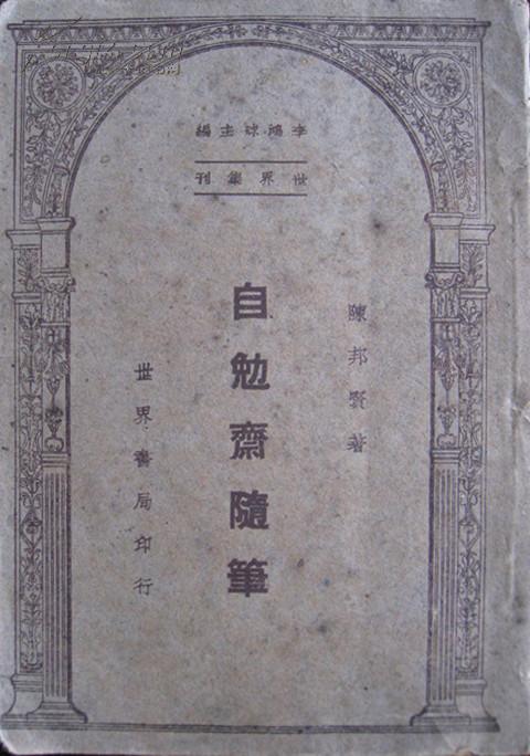 陳邦賢(1889-1976),江蘇丹徒(今屬鎮(zhèn)江)人,先后師從名醫(yī)李冠仙、著名醫(yī)學(xué)家兼佛學(xué)家丁福保,畢生從事醫(yī)學(xué)史研究、醫(yī)學(xué)教育和醫(yī)療衛(wèi)生事業(yè),撰有《中國(guó)醫(yī)學(xué)史》等。《自勉齋隨筆》(下文簡(jiǎn)稱“《隨筆》”)雖屬業(yè)余創(chuàng)作的文史筆記,但其中涉及疾病與醫(yī)學(xué)的條目,仍能使人窺見其醫(yī)者仁心。
