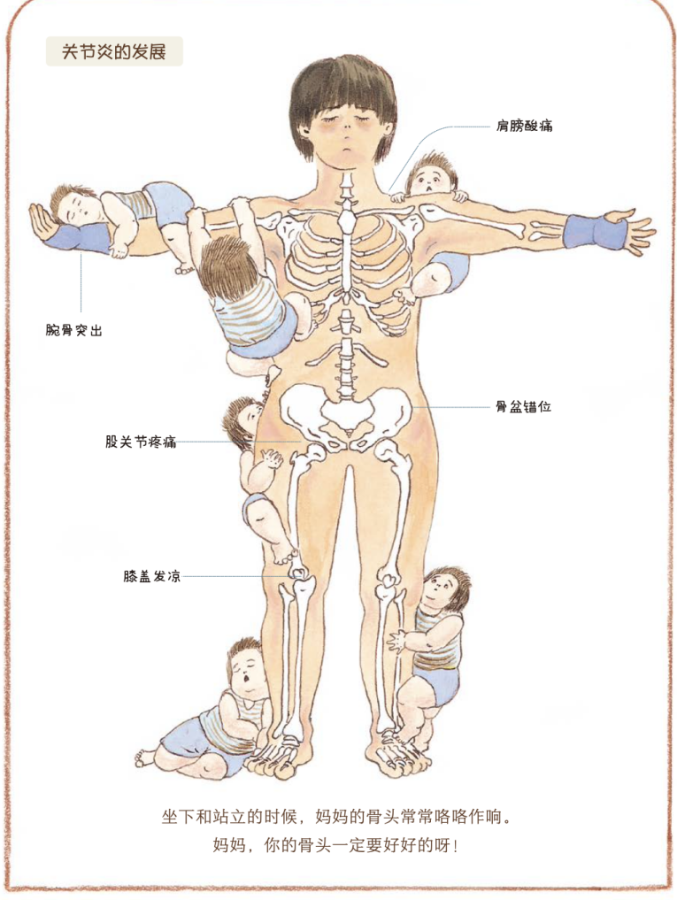 《我的媽媽》內(nèi)文圖,展現(xiàn)了產(chǎn)后的媽媽會發(fā)生骨骼的疼痛
