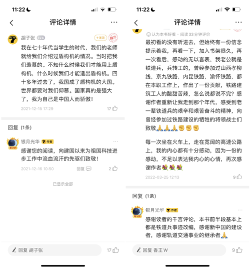 虞婧:我看見七貓小說閱讀APP上有很多讀者評(píng)論,其中好多讀者就是這個(gè)行業(yè)的從業(yè)人員或者家屬,小說走進(jìn)了工業(yè)人的心靈世界,有很多條您都回復(fù)了。看到他們的評(píng)論,您有什么體會(huì),有沒有什么印象深刻的評(píng)論,或者比較尖銳的批評(píng)意見?