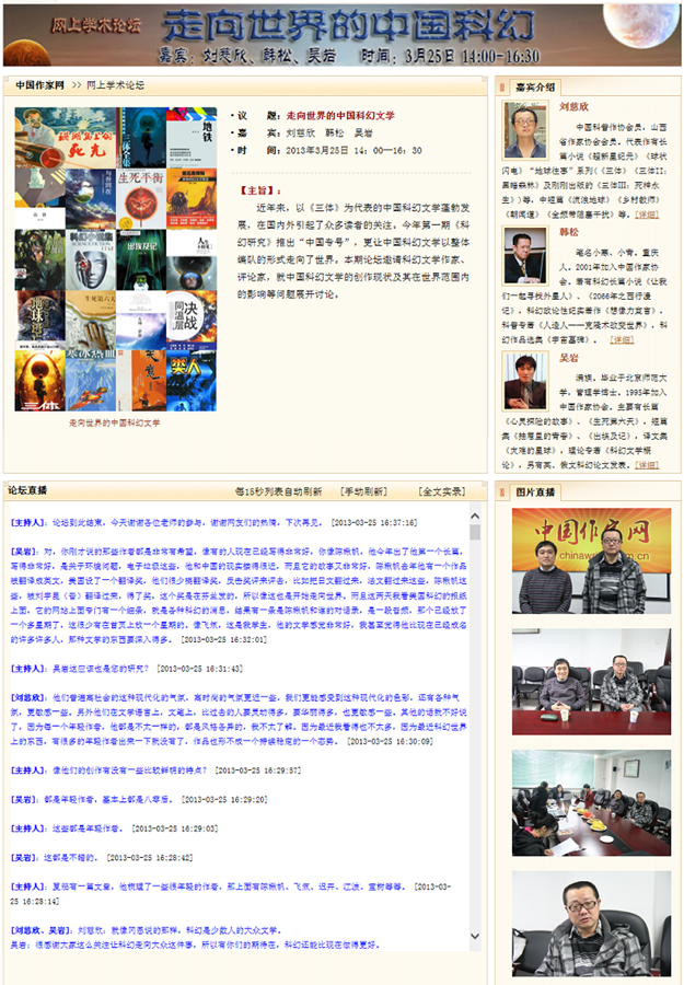 2013年中國作家網(wǎng)舉辦網(wǎng)上學術(shù)論壇