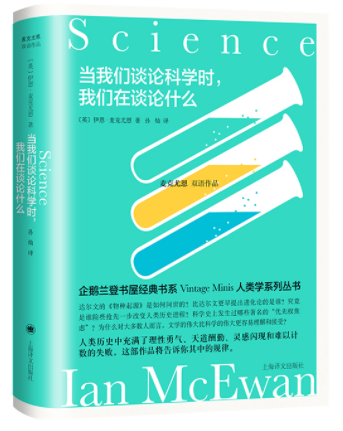 《當(dāng)我們談?wù)摽茖W(xué)時,我們在談?wù)撌裁础肥怯鴩褡骷乙炼?麥克尤恩關(guān)于科學(xué)和人文的一部隨筆集,被收入企鵝蘭登書屋的經(jīng)典Vintage Minis人類學(xué)系列。書中共收錄麥克尤恩的5篇隨筆:“文學(xué)、科學(xué)與人性”“物種獨創(chuàng)性”“平行的傳統(tǒng)”“世界末日藍調(diào)”和“自我”。