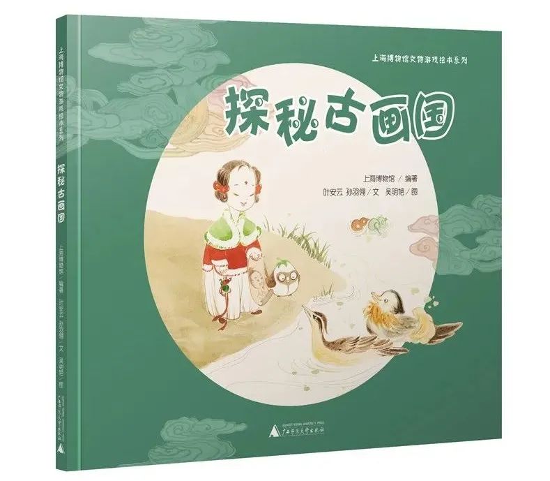 為了讓3-6歲的孩子也能親近文物、親近博物館,上海博物館組織專家成立編委會,編寫了“上海博物館文物游戲繪本”系列。繼《青銅國》和《樂游陶瓷國》之后,該系列現(xiàn)已出版到了第三本——《探秘古畫國》,收錄了上海博物館的19幅珍藏古畫。翻開這本書,就會看到,如墨般濃稠的夜色中,尋找?guī)熥鸬男」媚锬珒簭牟┪镳^的畫里跳下,順著月光變成的巨大毛筆滑入古畫國。