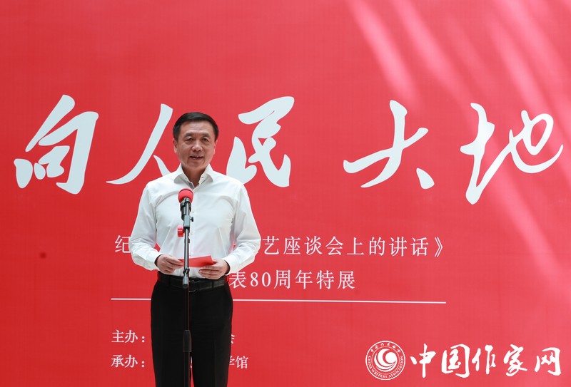 5月20日,由中國作協(xié)主辦、中國現(xiàn)代文學館承辦的“向人民大地——紀念《在延安文藝座談會上的講話》發(fā)表80周年特展”在京開幕。中國作協(xié)主席鐵凝出席開幕式并致辭。中國作協(xié)黨組書記、副主席張宏森宣布展覽開幕。開幕式由中國作協(xié)副主席、書記處書記李敬澤主持。中國作協(xié)黨組、書記處同志吳義勤、陳彥、胡邦勝、邱華棟、施戰(zhàn)軍、鄧凱出席開幕式。