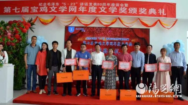 紅五月里紅歌亮,小滿吟誦又頒獎(jiǎng)。5月21日上午,在紀(jì)念毛澤東同志“5·23”講話發(fā)表80周年之際,備受關(guān)注的寶雞文學(xué)網(wǎng)第七屆年度文學(xué)獎(jiǎng)?lì)C獎(jiǎng)典禮在寶雞沃爾沃VRE體驗(yàn)中心舉行,柳望河、楚秀月、張格娟、王小勃、孫虎林、祝師斌、燕小燕、楊鴻韜、張建軍等9位寶雞作家分獲詩(shī)歌、小說、散文、古體詩(shī)詞、小戲劇本獎(jiǎng)。另有張瑞敏、魏愛云被授予平臺(tái)編輯奉獻(xiàn)獎(jiǎng)。