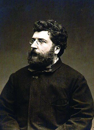 比才生于1838年,10歲進(jìn)入巴黎音樂學(xué)院,少年才華橫溢,不孚父母厚望,鋼琴演奏得到柏遼茲和李斯特的贊許。1855年,他的《C大調(diào)交響曲》出類拔萃,年僅19歲時(shí)獲“羅馬藝術(shù)大獎(jiǎng)”頭等獎(jiǎng)。進(jìn)而,他陸續(xù)譜出《采珠人》《波爾特的美姝》和《加米勒》等幾部歌劇。他不肯固守當(dāng)時(shí)歌舞劇的常規(guī),有些創(chuàng)意,可惜均未取得突破性效應(yīng),難以達(dá)到他殷切期望的“一鳴驚人”。