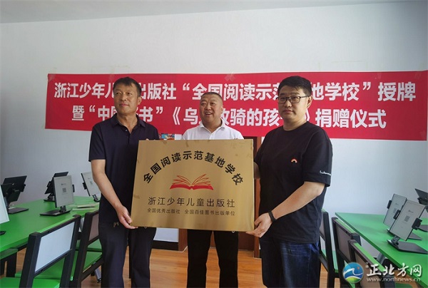 2022年是烏蘭牧騎成立65周年,也是習(xí)近平總書記給烏蘭牧騎隊員回信5周年。5月26日,浙江少年兒童出版社“全國閱讀示范基地學(xué)?!笔谂启摺爸袊脮薄稙跆m牧騎的孩子》捐贈儀式在錫林郭勒盟蘇尼特右旗第三小學(xué)舉行。該活動由北方新報社、浙江少年兒童出版社、中國人民政治協(xié)商會議蘇尼特右旗委員會共同主辦,以此鼓勵烏蘭牧騎的誕生地——蘇尼特右旗的孩子們,通過閱讀《烏蘭牧騎的孩子》,進(jìn)一步了解烏蘭牧騎隊員的動人故事和感人事跡,做新時代的“烏蘭牧騎的孩子”。