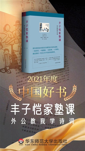 2022年4月23日,“2021年度中國(guó)好書(shū)”公布,華東師范大學(xué)出版社出版的《豐子愷家塾課:外公教我學(xué)詩(shī)詞》(全二冊(cè))入選。該書(shū)講述了豐子愷具有特色的家庭教育——“課兒”(私塾課),豐子愷親自為兒孫講解中國(guó)古典文學(xué),輔導(dǎo)他們學(xué)習(xí)外語(yǔ)?!罢n兒”的特點(diǎn)是“養(yǎng)成教育”,旨在提高孩子們的素質(zhì)和修養(yǎng)。書(shū)中除了回憶場(chǎng)景,還配有豐子愷插畫(huà)以及古詩(shī)詞注釋,在紙本上真實(shí)還原當(dāng)年豐家的私塾課。