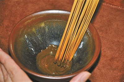 趙盼兒在第一集還表演了“茶百戲”,用一根小竹棍兒蘸著茶粉,在黃綠色的茶湯泡沫上畫畫。這種表演是福建茶人章志峰先生在二十年前根據(jù)自己的理解“復(fù)原”出來(lái)的,跟宋代文獻(xiàn)里的記載并不一致。