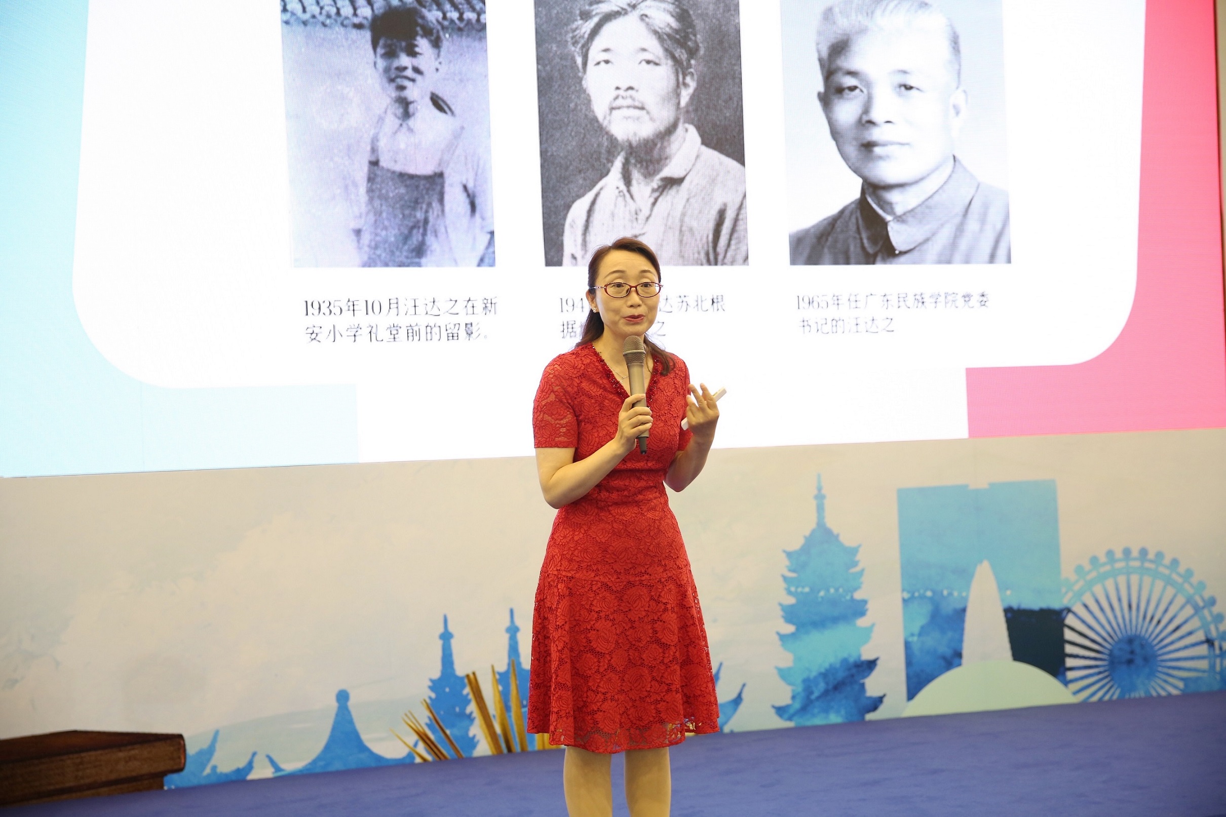 韓青辰現(xiàn)場分享了自己創(chuàng)作《中國少年》的過程,講述了她前往淮安、上海等地采訪“新旅”相關(guān)人員以及“新旅”母?!窗彩行掳残W(xué)的故事,現(xiàn)場展示了大量珍貴的“新旅”照片等史料。她說,“新旅”團(tuán)員們勇做傳播生活教育的“小先生”、宣傳抗日救亡的“小好漢”,這一系列艱難困苦的經(jīng)歷讓他們實現(xiàn)了從革命后代或貧苦孩子到“小主人”的轉(zhuǎn)變。她還說,從團(tuán)員們身上,自己看到了無畏苦難、頑強(qiáng)學(xué)習(xí)、忠心愛國、忠誠愛黨的精神?!啊侣谩恼n桌是膝蓋、草垛、戰(zhàn)壕、彈坑,‘新旅’團(tuán)員身上長滿疥瘡、虱瘡,行軍時腳上全是血泡,冬天手腳上都是凍瘡。在極其艱苦的條件下,他們以四海為教室,以四鄰為老師,警報就是上課鈴。‘?dāng)橙嗽谵Z炸,我們在上課’,這是多么豪邁雄壯的宣言!”