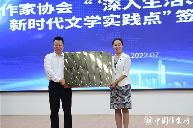 頒授中國作家“深入生活 扎根人民”新時(shí)代文學(xué)實(shí)踐點(diǎn)牌匾