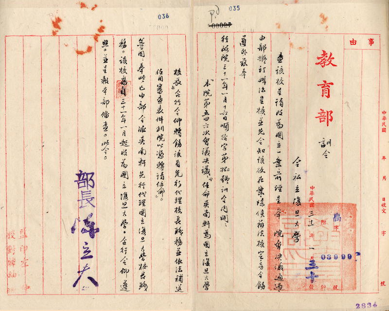 1942年1月30日,復(fù)旦大學(xué)由私立改為國立的教育部訓(xùn)