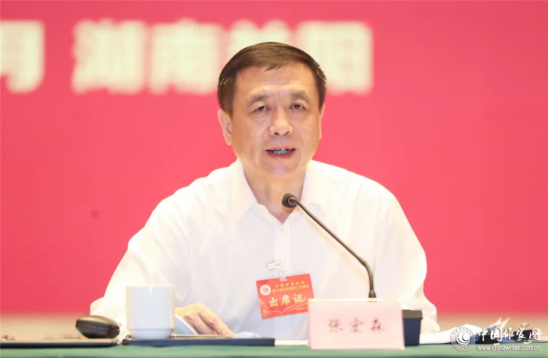 張宏森在報告中指出,要進一步深入學(xué)習(xí)習(xí)近平總書記重要講話精神,深刻把握核心要義和實踐要求。要深刻認識黨領(lǐng)導(dǎo)文藝工作取得的輝煌成就和積累的寶貴經(jīng)驗,堅定社會主義文學(xué)道路;牢牢把握新時代文學(xué)的歷史方位,以強烈歷史主動精神書寫中華民族新史詩;堅持人民立場,讓文藝的百花園永遠為人民綻放;堅持守正創(chuàng)新,開辟文學(xué)新境界,拓展文學(xué)新空間;緊緊圍繞“做人的工作”,鍛造新時代文學(xué)的中堅力量。