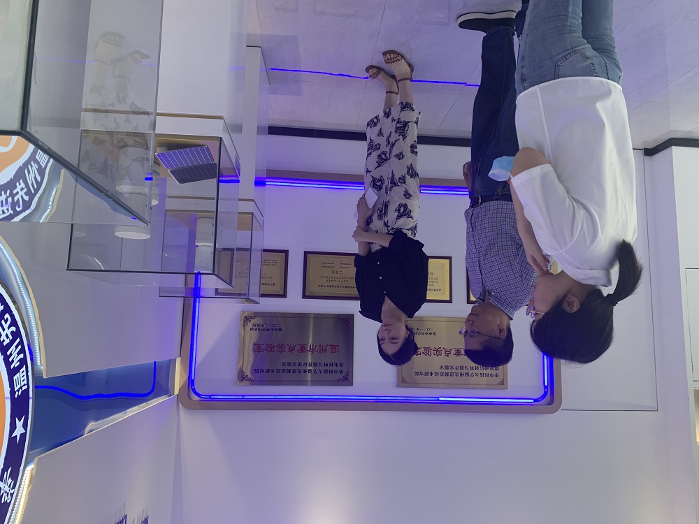 2022年7月25日,曹凌云(左)在中電???溫州光電產(chǎn)業(yè)創(chuàng)新聯(lián)合體光電材料與器件應(yīng)用實驗室了解情況。