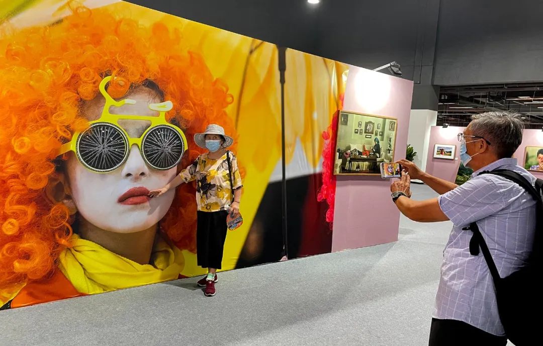 觀眾在“無(wú)主題藝術(shù)類”展墻前與作品合影。張雙雙 攝