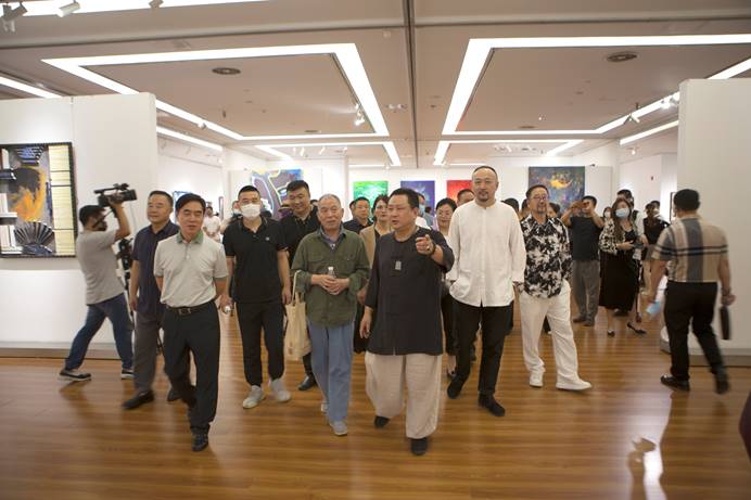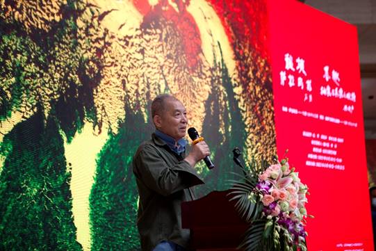 開幕式上,漫畫家蔡志忠發(fā)來視頻賀辭。作家梁曉聲,國家發(fā)改委書畫協(xié)會會長王思強(qiáng),中國世界民族文化交流促進(jìn)會副會長兼秘書長邱麗,中央美術(shù)學(xué)院教授、喀什大學(xué)美術(shù)與設(shè)計學(xué)院院長薛云祥,中國畫大師黃胄之女梁纓,廣西大家育才教育投資有限公司董事長傅連城,畫家賀鵬飛先后發(fā)表致辭。王思強(qiáng)還代表中國美協(xié)駐會副主席、黨組書記馬鋒輝對本次畫展表示祝賀。文化和旅游部原黨組成員、中國非物質(zhì)文化遺產(chǎn)保護(hù)協(xié)會會長王曉峰宣布畫展開幕。