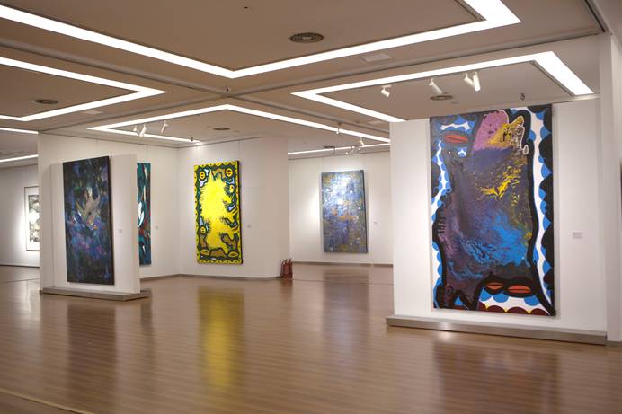 8月20日,“秘境·薩拉烏蘇——賀鵬飛繪畫作品展”和“墨趣·抽象與具象之碰撞——賀鵬飛師友合作展”在北京炎黃藝術(shù)館同時開幕?!懊鼐场に_拉烏蘇——賀鵬飛繪畫作品展”展出原始主義畫派抽象表現(xiàn)主義畫家、出版人、連鎖書店“字里行間”品牌創(chuàng)始人賀鵬飛近年來創(chuàng)作的個人繪畫作品40余幅,靈感主要來源于內(nèi)蒙古鄂爾多斯薩拉烏蘇文化遺址?!澳ぁこ橄笈c具象之碰撞——賀鵬飛師友合作展”展出賀鵬飛與蔡志忠、韓紹先、張志民、薛云祥、梁曉聲等一眾師友碰撞、合作創(chuàng)作的繪畫作品60余幅。