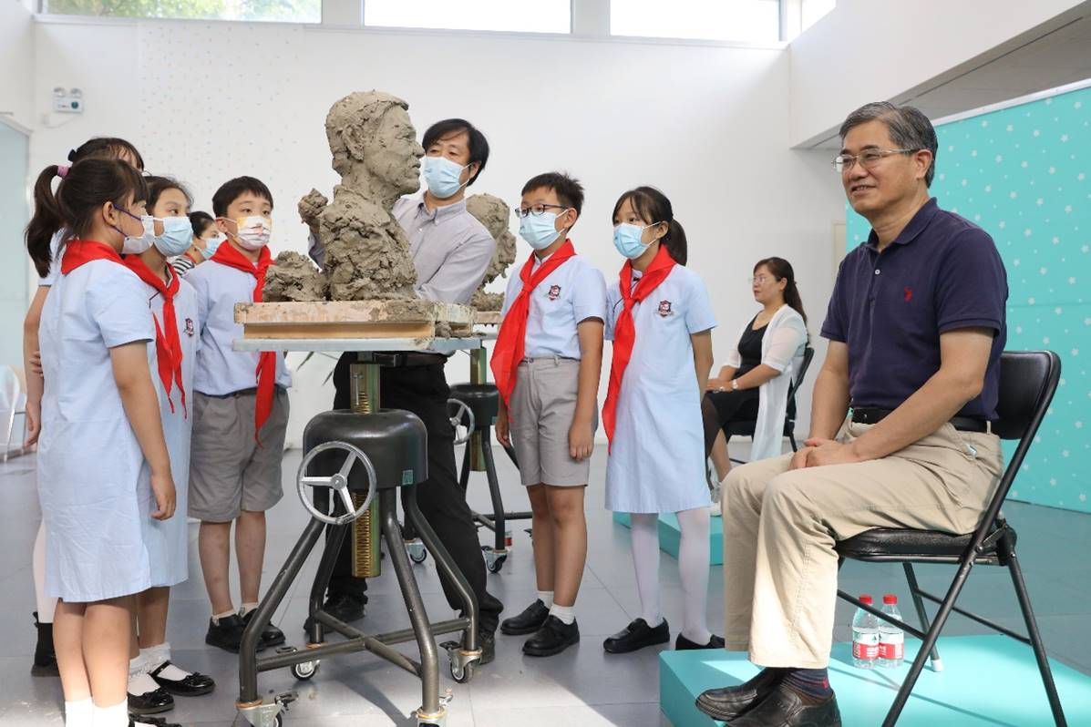 少先隊員現(xiàn)場觀摩藝術家為教師代表塑像活動。 盧旭 攝
