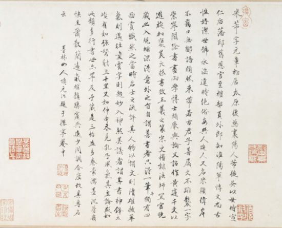 米芾的《行書三帖卷》是其早年之書,蕭散簡遠,氣雄韻勝,熔鑄“二王”筆韻于心手。卷中包含三帖分別為——《叔晦帖》(亦稱《秘玩帖》)《李太師帖》和《張季明帖》。