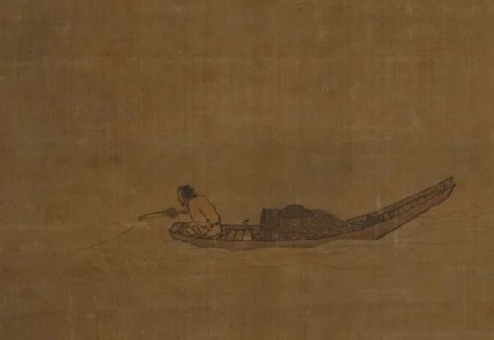 《寒江獨釣圖》傳為宋代馬遠創(chuàng)作的一幅山水畫。畫中,作者以嚴謹?shù)蔫F線描,畫一葉扁舟,上有一位老翁俯身垂釣,船旁以淡墨寥寥數(shù)筆勾出水紋,四周都是空白。畫家畫得很少,但畫面并不空。反而令人覺得江水浩渺,寒氣逼人。而且還覺得空白之處有一種語言難以表述的意趣,是空疏寂靜,還是蕭條淡泊,真令人思之不盡。這種詩-般耐人尋味的境界,是畫家的心靈與自然結合的產(chǎn)物,在藝術上則是利用虛實結合而產(chǎn)生的結果。