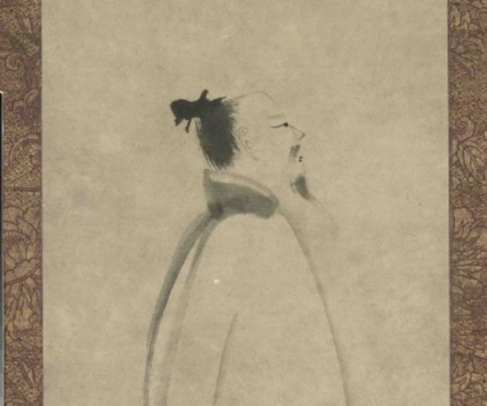 《李白行吟圖》是梁楷減筆人物畫的代表作品。畫中李白側身而立,仰面于天,詩情寄于胸懷,獨自縱思運句,所謂“月下獨酌”。初看似是用寥寥數(shù)筆畫成,但若細細品察,就可發(fā)現(xiàn)筆筆皆是精妙設計。頭部用細線輕巧刻畫,衣袍與頭部細線相映成趣,用線格外豐富,虛實結合,濃淡變化,抑揚頓挫,使得人物不再孤立于紙面,而是融于背景,巧妙地表現(xiàn)詩人李白在天地之間飄然獨立之態(tài)。未經(jīng)雕琢的爽逸線條,展現(xiàn)出李白的瀟灑浪漫。