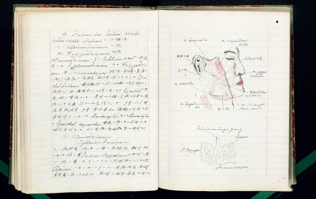 四是1904年至1906年在仙臺(tái)醫(yī)專留學(xué)一年半,課程有《德語(yǔ)》《解剖學(xué)》《物理學(xué)》《化學(xué)》《組織學(xué)》《倫理學(xué)》《骨學(xué)》《血管學(xué)》《神經(jīng)學(xué)》《體操》等,目前留存的僅有《解剖學(xué)》課堂筆記,其余均散佚。僅《解剖學(xué)》筆記就有6冊(cè),達(dá)10余萬(wàn)字,可見(jiàn)散佚的其余各課程筆記應(yīng)不少于20萬(wàn)字。