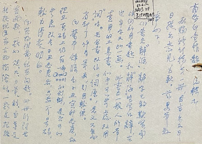 陳夢(mèng)家致商務(wù)印書館辭書編輯部