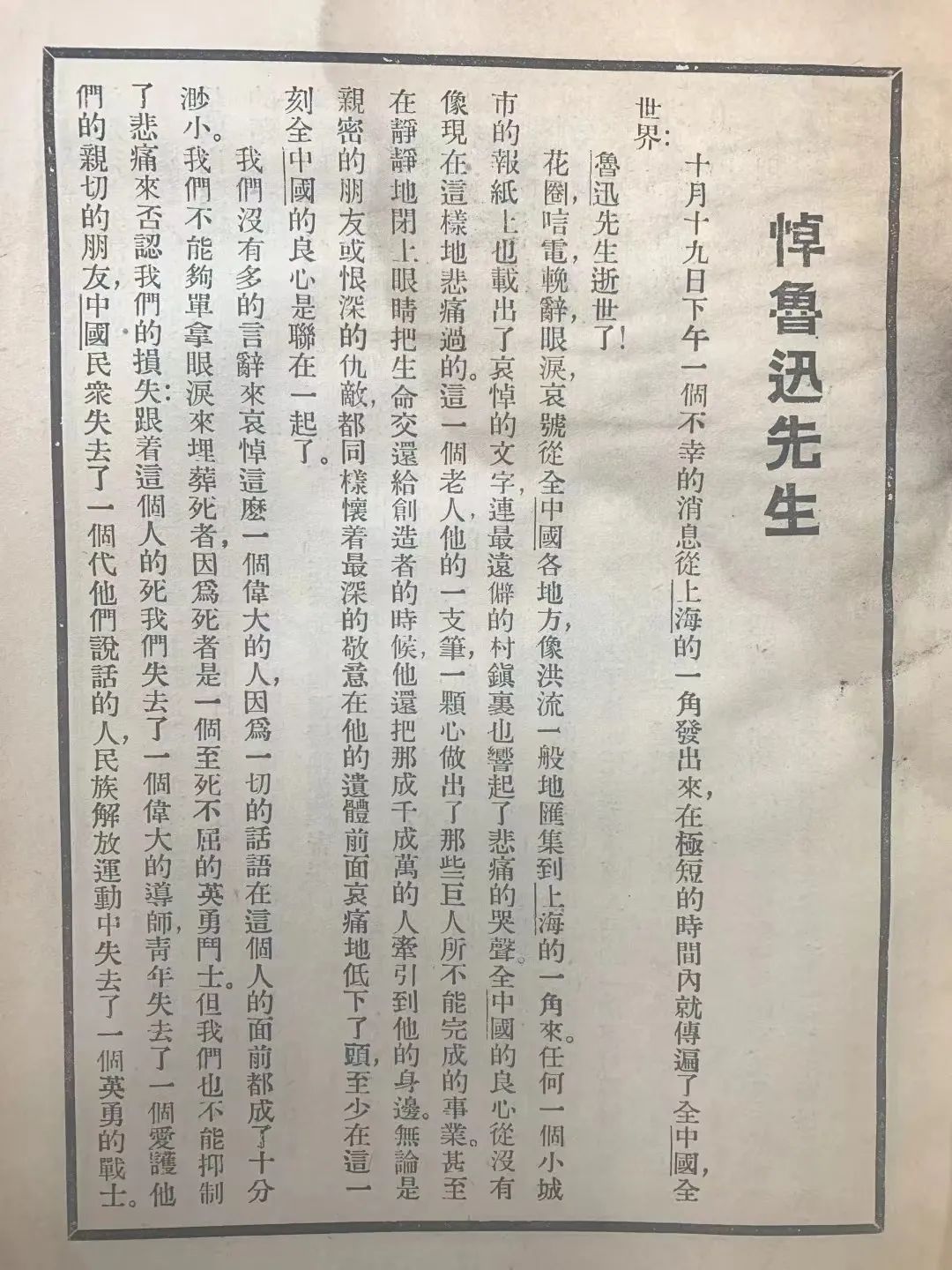 我們沒有多的言辭來哀悼這么一位偉大的人,因為一切的語言在這個老人的面前都變成了十分渺??;我們不能單單用眼淚來埋葬死者,因為死者是一個至死不屈的英勇戰(zhàn)士。但是我們也無法制止悲痛來否認我們的巨大損失;這個老人的逝世使我們失去了一位偉大的導(dǎo)師,青年失去了一個愛護他們的知己朋友,中國人民失去了一個代他們說話的人,中華民族解放運動失去了一個英勇的戰(zhàn)士。這個缺額是無法填補的。(巴金:《悼魯迅先生》)