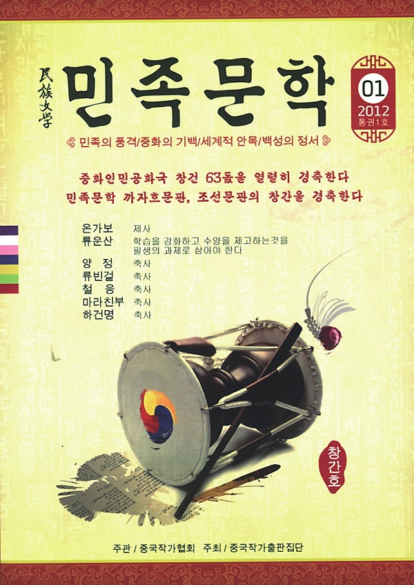 得到這個消息時,雜志社的葉梅、李霄明和我三位主編、副主編正在第十屆全國少數(shù)民族文學創(chuàng)作駿馬獎的評獎會上。消息傳來,大家精神振奮。葉梅主編提出9月份就創(chuàng)刊,作為向9月18日在北京開幕的第五屆全國少數(shù)民族文學創(chuàng)作會議的獻禮。這兩個文版創(chuàng)刊號的大致篇目,也是在駿馬獎評獎駐地商定的。中國作協(xié)主席鐵凝為創(chuàng)刊號題詞,中國作協(xié)黨組書記李冰寫了發(fā)刊詞。我們又到國家民委的中國民族語文翻譯局,跟翻譯局的領導和專家商量。翻譯局領導和哈薩克文室、朝鮮文室的主任和專家們都很支持。雖然他們也覺得時間太緊,但大家認為9月份創(chuàng)刊既然很有意義,就應予以大力協(xié)助和配合。為了使這兩個文版能夠及時順利創(chuàng)刊,翻譯局內(nèi)部還專門召開會議,進行動員和部署。翻譯局哈薩克文室、朝鮮文室分別承擔了哈薩克文版和朝鮮文版創(chuàng)刊號的主要翻譯和審讀工作。9月12日,翻譯局朝鮮文室主任金英鎬和朝鮮文室專家金炳淳在辦公室工作到晚上七點多鐘,一直都在閱改《民族文學》朝鮮文版創(chuàng)刊號藍圖。記得當天下午下班前,我和朝鮮文版編輯徐海玉趕到金英鎬主任的辦公室。我們坐在沙發(fā)上,等著他完成刊物藍圖的最后審讀。辦公室內(nèi)燈火通明,金先生一頁頁翻開藍圖,在上面不時勾勾畫畫,神情寧靜而專注……