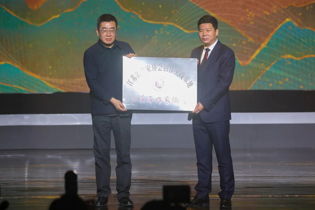 此次活動上,省作協(xié)還在高曉聲故鄉(xiāng)鄭陸鎮(zhèn)設(shè)立了“江蘇省作家協(xié)會創(chuàng)作實踐基地”,丁捷向鄭陸鎮(zhèn)黨委書記李漢田授牌。