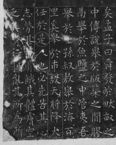 最近關(guān)于《孟子》中是“天降大任于是人也”,還是“天降大任于斯人也”,引起眾多網(wǎng)友的熱議。西安碑林博物館鎮(zhèn)館之寶《開成石經(jīng)》清晰地鐫刻著“是人”?!堕_成石經(jīng)》刻于唐朝,而《孟子》一篇是清康熙朝補(bǔ)刻上的。這至少說明在明清之際應(yīng)該是“故天將降大任于是人也”。