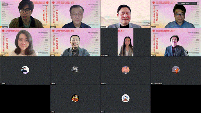 下午,大會(huì)的四個(gè)平行論壇分別圍繞不同主題,于線上同步召開。平行論壇一以“中華文化的天下情懷”為主題展開討論,從中華優(yōu)秀思想文化的影像表達(dá)與國(guó)家傳播策略等宏觀角度著眼,結(jié)合“看中國(guó)·外國(guó)青年影像計(jì)劃”等傳播實(shí)踐,探討了在微觀層面,中華文化的強(qiáng)大感染力應(yīng)如何被發(fā)揚(yáng)和傳播。平行論壇二以“中國(guó)電影的國(guó)際傳播”為主題展開研討,探索了中國(guó)文化在web3.0時(shí)代應(yīng)如何通過(guò)影像手段完成跨文化傳播,在創(chuàng)新和實(shí)踐中構(gòu)建中國(guó)電影學(xué)派,形成具有中國(guó)特色的理論話語(yǔ)體系。平行論壇三結(jié)合“中國(guó)文藝與國(guó)家形象的建構(gòu)”主題,從早期中外動(dòng)畫電影交流史、國(guó)家慶典的藝術(shù)表達(dá)、現(xiàn)實(shí)題材電視劇出海等具體藝術(shù)實(shí)踐出發(fā),討論中國(guó)文藝對(duì)于國(guó)家形象建構(gòu)的現(xiàn)實(shí)意義。平行論壇四以“當(dāng)代中國(guó)文化的生成經(jīng)驗(yàn)”為主題,探討了中國(guó)當(dāng)代電影國(guó)際傳播的困境與應(yīng)對(duì)策略、藝術(shù)與科學(xué)融合背景下中國(guó)工業(yè)設(shè)計(jì)國(guó)際影響力提升等具有現(xiàn)實(shí)意義的熱點(diǎn)話題,體現(xiàn)了學(xué)界對(duì)現(xiàn)實(shí)問(wèn)題的關(guān)注和思考。