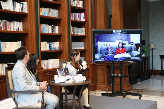 視頻畫面中左側(cè)為作家米歇爾·維勒貝克,右側(cè)為李倩云