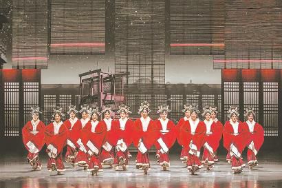 舞劇《五星出東方》“錦繡”舞段在舞臺上營造的莊重威儀之感還離不開一個重要的道具:屏風。