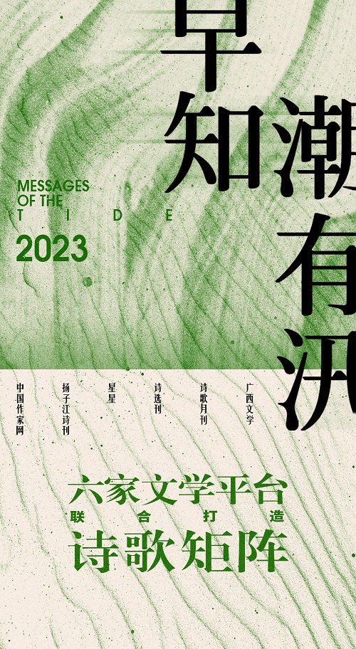 為積極響應(yīng)并貫徹落實(shí)中國作協(xié)十屆二次全委會(huì)工作報(bào)告中指出的“全力培育中國文學(xué)新力量,建設(shè)規(guī)模宏大的新時(shí)代作家隊(duì)伍”要求,為新人輩出營造浪潮推舟的良好環(huán)境,推動(dòng)詩歌進(jìn)一步發(fā)展繁榮,《廣西文學(xué)》《詩歌月刊》《詩選刊》《星星》《揚(yáng)子江詩刊》、中國作家網(wǎng)六家文學(xué)平臺(tái)聯(lián)合建立跨域融合發(fā)展的詩歌矩陣——“早知潮有汛”,懷著“后浪推前浪”的喜悅和責(zé)任助推文學(xué)新潮的到來。