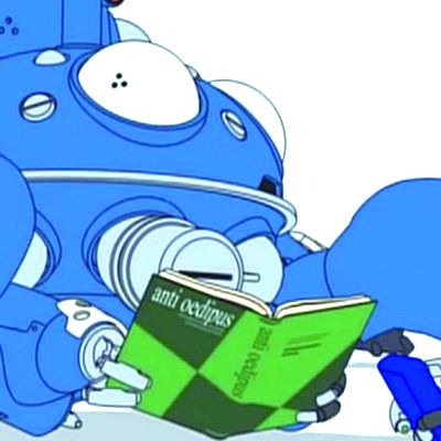 盡管沒有正劇那樣宏大、復(fù)雜的敘事主題,《日?!啡匀惶峁┝嗽S多有趣的哲學(xué)思考,或至少是其思辨基礎(chǔ)——尤其與人工智能、賽博格、后人類與后現(xiàn)代等議題相關(guān)。在《日?!防?,塔奇克馬甚至?xí)喿x吉爾·德勒茲與菲利克斯·加塔利的哲學(xué)著作《反俄狄浦斯》。
