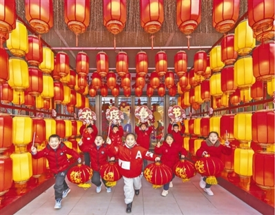 1月21日,在江蘇宿遷泗洪縣青陽(yáng)街道吾悅廣場(chǎng)上,小朋友在年市長(zhǎng)廊里開展“歡樂中國(guó)年”主題活動(dòng),迎接農(nóng)歷新年。 張連華攝(人民視覺)