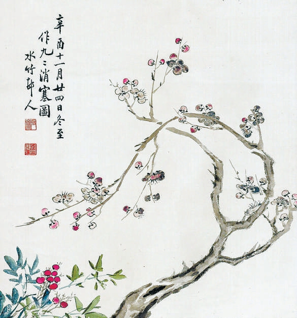 梅花型消寒圖被稱為“雅圖”。圖上先畫素梅一枝,梅花或正或側(cè),或盛開,或尚為花苞,共八十一瓣。每天染紅一瓣,到第九九八十一天時,花瓣全被涂染成了紅色,就是一枝紅梅迎春風。古代閨閣中的女子早起化妝時便用胭脂暈染一瓣,別有趣味。