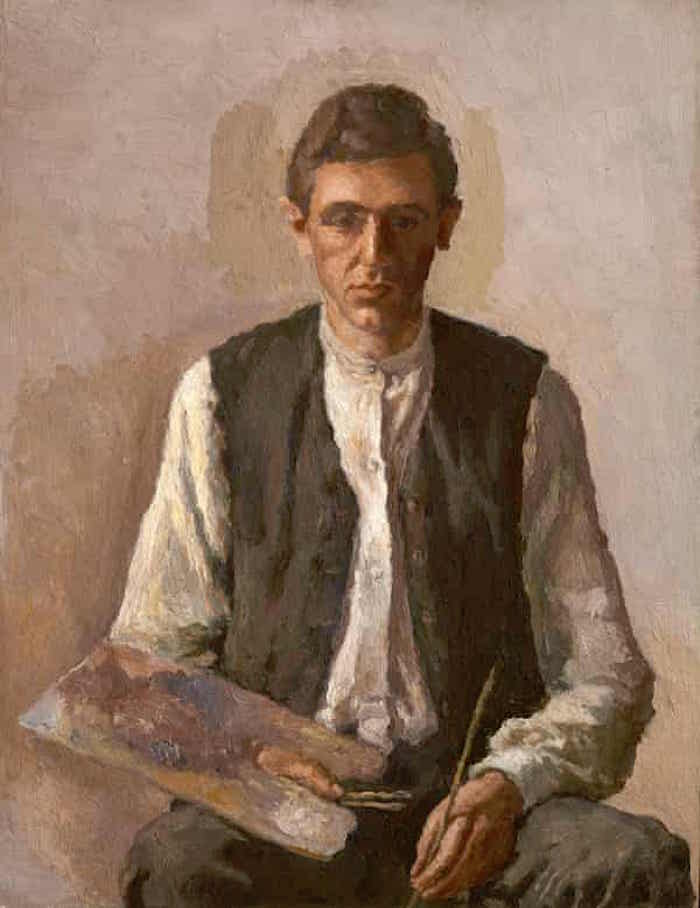 他可能是位農(nóng)民,也可能是位體力勞動(dòng)者,他穿著無領(lǐng)襯衫和棕色馬甲,正坦率地看著你。但是,他手中的畫筆和調(diào)色板證實(shí)了他的真實(shí)職業(yè)。這是喬治·莫蘭迪(Giorgio Morandi)在1925年時(shí)創(chuàng)作的一幅令人深受喜愛的《自畫像》。彼時(shí)他才30多歲。