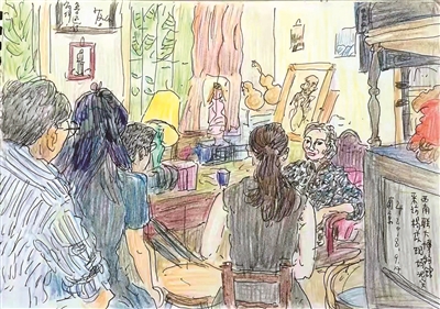 被年輕人包圍的楊苡先生 繪圖/趙蘅