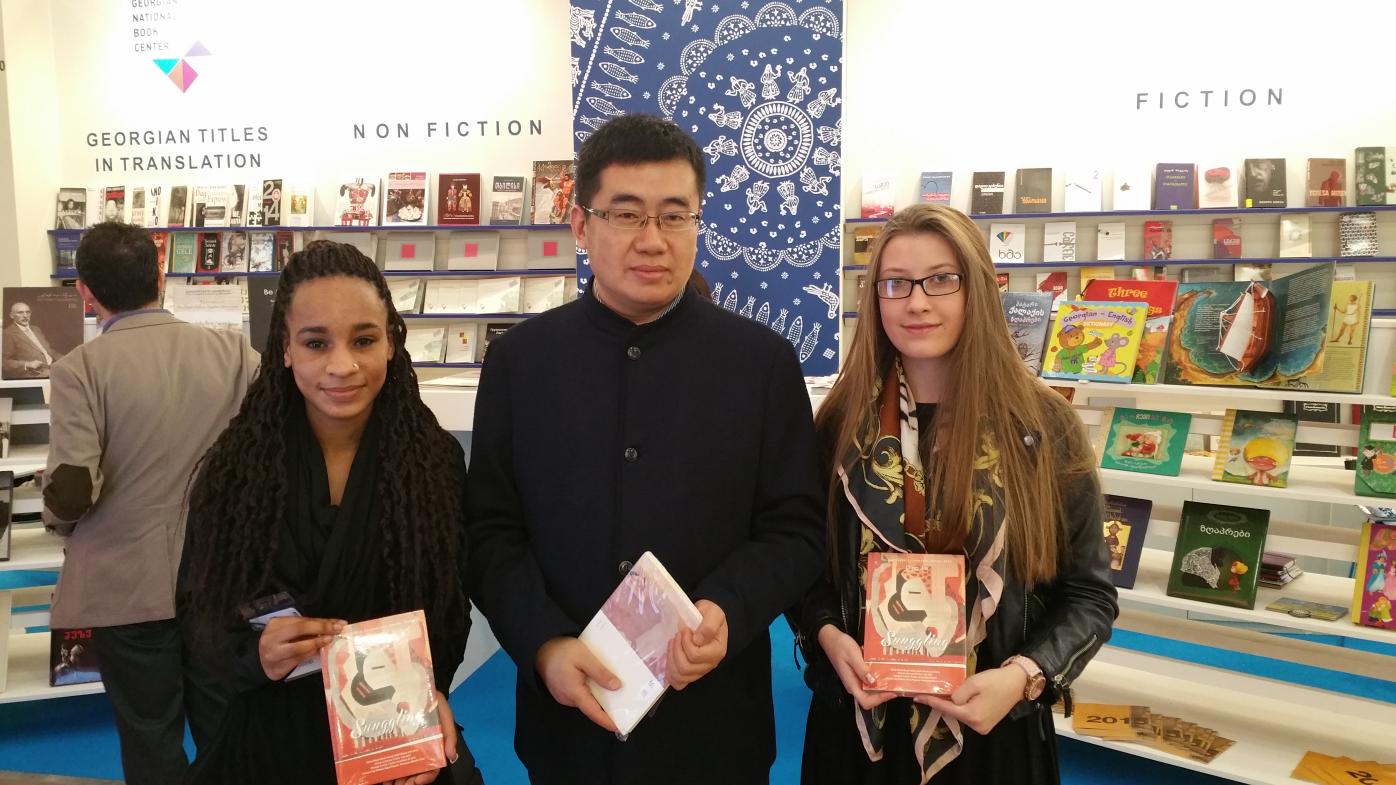 2015年丁捷長篇小說《依偎》英文版出版,丁捷應邀參加倫敦國際書展上的發(fā)布活動,與外國讀者在一起。
