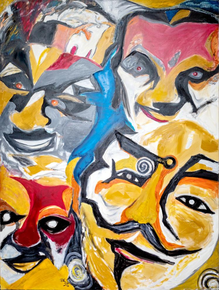 被很多讀者打卡的丁捷巨幅油畫《極樂戲》,該作品曾參加澳門國際藝術(shù)雙年展。