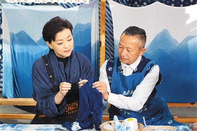 節(jié)目發(fā)起人楊瀾(左)在體驗(yàn)白族扎染。