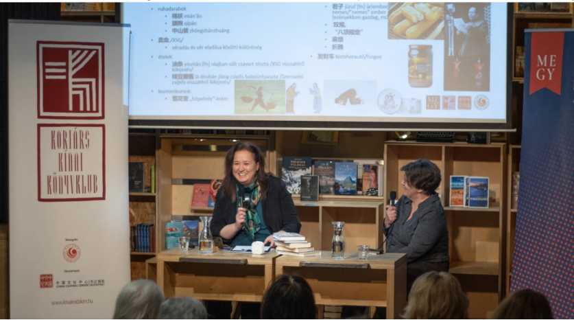 羅蘭大學(xué)漢學(xué)家、東方語系圖書館管理員馬約爾·科妮莉雅(MAJOR Kornélia)與漢學(xué)家、文學(xué)翻譯家、中國文學(xué)在線數(shù)據(jù)庫(kinaiirodalom.hu)主編、中國文學(xué)讀者俱樂部負(fù)責(zé)人宗博莉·克拉拉(ZOMBORY Klára)就中匈文學(xué)翻譯中經(jīng)常遇到的問題、難點以及翻譯的美妙之處進(jìn)行了探討。在一個半小時的活動中,兩位專家向讀者們介紹了中國文學(xué)翻譯在匈牙利發(fā)展的歷程和兩位翻譯家的從業(yè)初衷,對兩種不同語言及文化的差異進(jìn)行了深入分析,并介紹了大量已被翻譯成匈牙利文的作品案例。