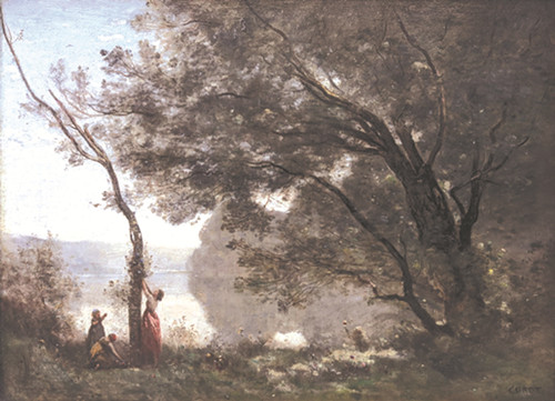 19世紀(jì)初,最早被吸引到巴比松的是風(fēng)景畫(huà)大師卡米耶·柯羅(Camille Corot,1796-1876)。他生于巴黎一個(gè)富商之家,得父母應(yīng)允和資助,自青年時(shí)期開(kāi)始習(xí)畫(huà),打下堅(jiān)實(shí)的傳統(tǒng)美術(shù)基礎(chǔ)。但是,他更傾向于露天寫(xiě)生,自由地深入大自然,暢想描繪林中仙女和人身羊足、頭上長(zhǎng)角的農(nóng)牧神,形成自身獨(dú)特的天然景色結(jié)構(gòu)。他以《塞納河岸》和《阿沃萊市郊》等作品稱稀,成為首位妙筆卓著的巴比松派畫(huà)家。