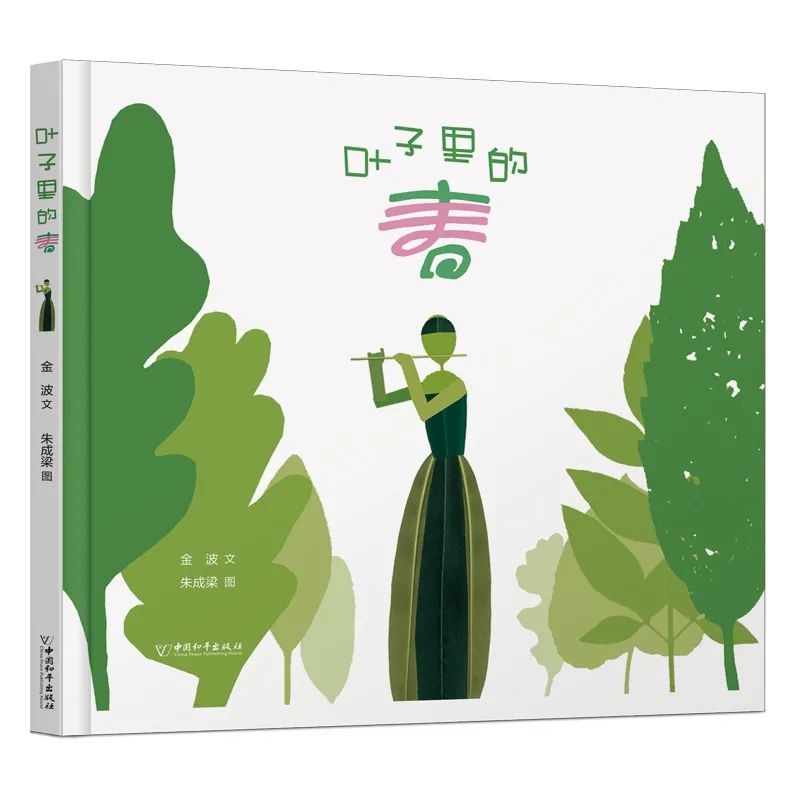 “笛聲悠揚呼喚立春,琵琶弦弦彈奏雨水,鼓聲陣陣大地驚蟄,提琴緩緩春分來臨……詩歌和畫面時而重合時而平行,讓作品產(chǎn)生了一種流動的音樂感?!薄度~子里的春》由著名詩人、兒童文學(xué)作家金波和著名圖畫書作家、插畫家朱成梁共同創(chuàng)作,以葉子為素材,組合成眾多新的形象,講述了一個關(guān)于樹葉、音樂、節(jié)氣和春姑娘的故事。