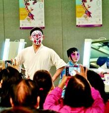 2022年11月,多元粵劇節(jié)目亮相香港“粵劇日”活動(dòng)。圖為粵劇演員向觀眾示范粵劇化妝。香港特區(qū)政府新聞處圖片