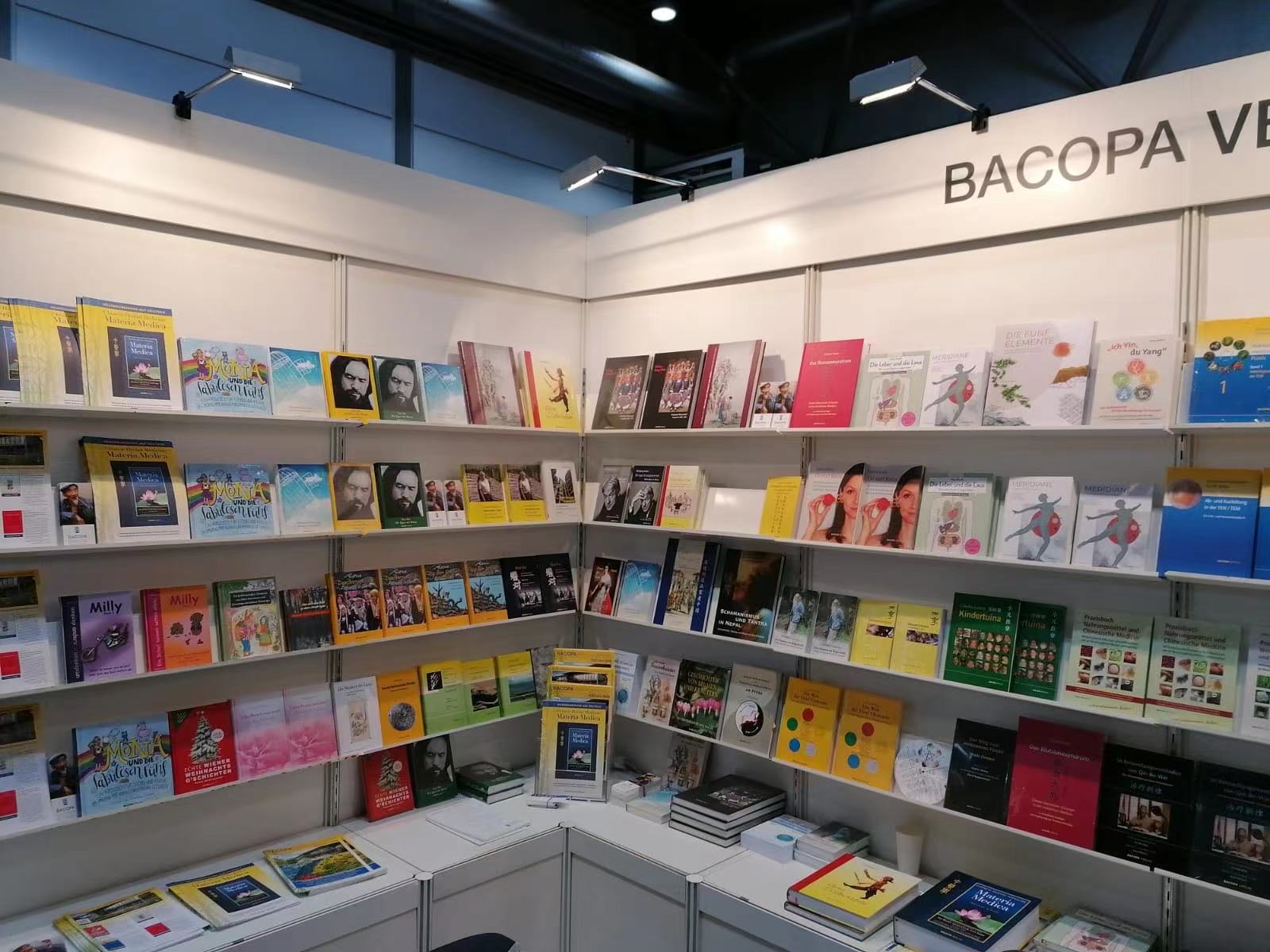 書展的主會場為不同的出版社劃片區(qū)域,展示產(chǎn)品,并為作家們提供分享作品和探討觀點(diǎn)的場地。奧地利八棵葩出版社BACOPA VERLAG攜包括歐華德語小說集在內(nèi)的各類出版物,回歸闊別四年的書展,意義非同尋常,亦是展會的一個亮點(diǎn)。