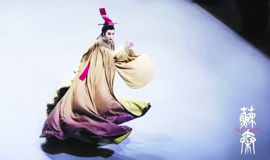 以上是蘇秦人物形象確立、思想情緒變化最為激烈的兩場戲。除了劇作本身的解讀和構(gòu)建外,演員對角色的二度創(chuàng)作也很重要。蔡浙飛對蘇秦的演繹具有突破性。從舞臺上人物狀態(tài)的展現(xiàn)、情緒的表達(dá)、激烈情感的釋放等一系列表演中可以看出,她對角色的理解是融入了自身感受的,把握住了人物的精神內(nèi)核。其中,第二場“悟道”的表演比較注重對做功的把握與展現(xiàn),蔡浙飛通過神態(tài)與肢體語言的配合展現(xiàn)了蘇秦的郁郁不得志,將他埋首書籍以求破解之道,既瘋癲又對自己所走之路十分堅定的精神狀態(tài)展現(xiàn)得淋漓盡致。第三場六國拜相的表演則唱念皆重,在蘇秦游說六國國君、舌戰(zhàn)群雄時,以念白凸顯其才華和對時局的精準(zhǔn)把控。蔡浙飛通過念白的輕重緩急與節(jié)奏變化,或娓娓道來、或強(qiáng)勢威懾,展現(xiàn)了人物對不同國君的態(tài)度和策略。在蘇秦佩六國相印后,有一段長達(dá)12分鐘的獨(dú)訴唱段,這是人物完成自我跨越的重頭戲。在這段唱腔的處理上,蔡浙飛用非常穩(wěn)健的氣息控制人物的情緒轉(zhuǎn)換,從害怕、猶疑到彷徨、掙扎,再到堅定本心、砥礪前行,感情充沛又恰到好處。表現(xiàn)這樣一個執(zhí)著于理想初衷,為實現(xiàn)抱負(fù)嘔心瀝血,甚至不惜損害自己名譽(yù)也要成全六國合縱愿望、換取百姓休養(yǎng)生息的“理想家”,需要演員閱歷豐富,對角色有獨(dú)到的理解,蔡浙飛的表演做到了以絕對的信念感和力量感,達(dá)到角色與自我意識和認(rèn)知的合一,實現(xiàn)了她在表演上的又一次飛躍。