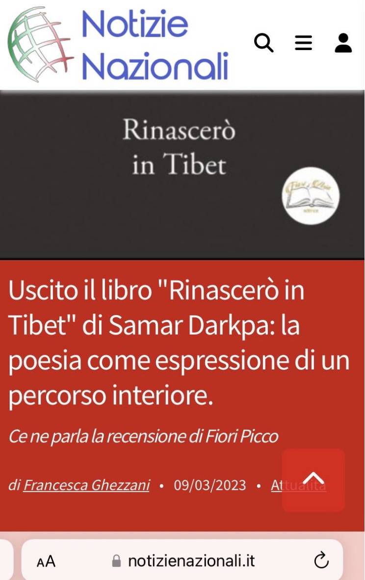 5月12日和18日,意大利 “中國(guó)文學(xué)讀者俱樂部” 舉辦第四期讀書活動(dòng),推介了詩(shī)人沙冒智化的意大利文版詩(shī)集《重生西藏》。該活動(dòng)分為線下、線上兩場(chǎng),由中國(guó)作家協(xié)會(huì)支持,意大利中國(guó)文學(xué)讀者俱樂部與意大利花達(dá)西亞出版社 (Fiori d’Asia Editrice) 、意大利布雷西亞基亞里市 “燈塔50.0文化協(xié)會(huì)“( Associazione Il Faro 50.0 di Chiari ) 和意大利著名文學(xué)沙龍 “吟游詩(shī)人之家” ( La Casa del Menestrello) 聯(lián)合舉辦。