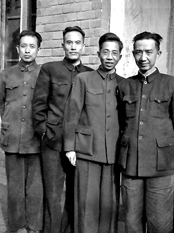 1951年,北京東總布胡同22號中華全國文學(xué)工作者協(xié)會大院內(nèi)蕭殷住所門前合影。左起:艾蕪、張?zhí)煲?、蕭殷、沙汀?/span>
